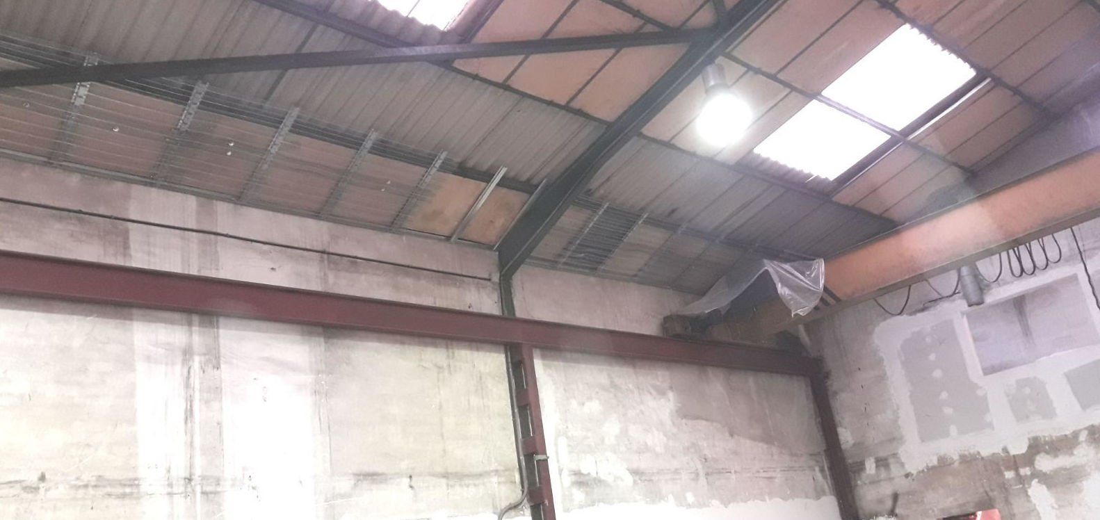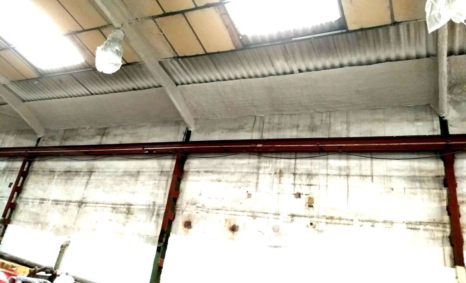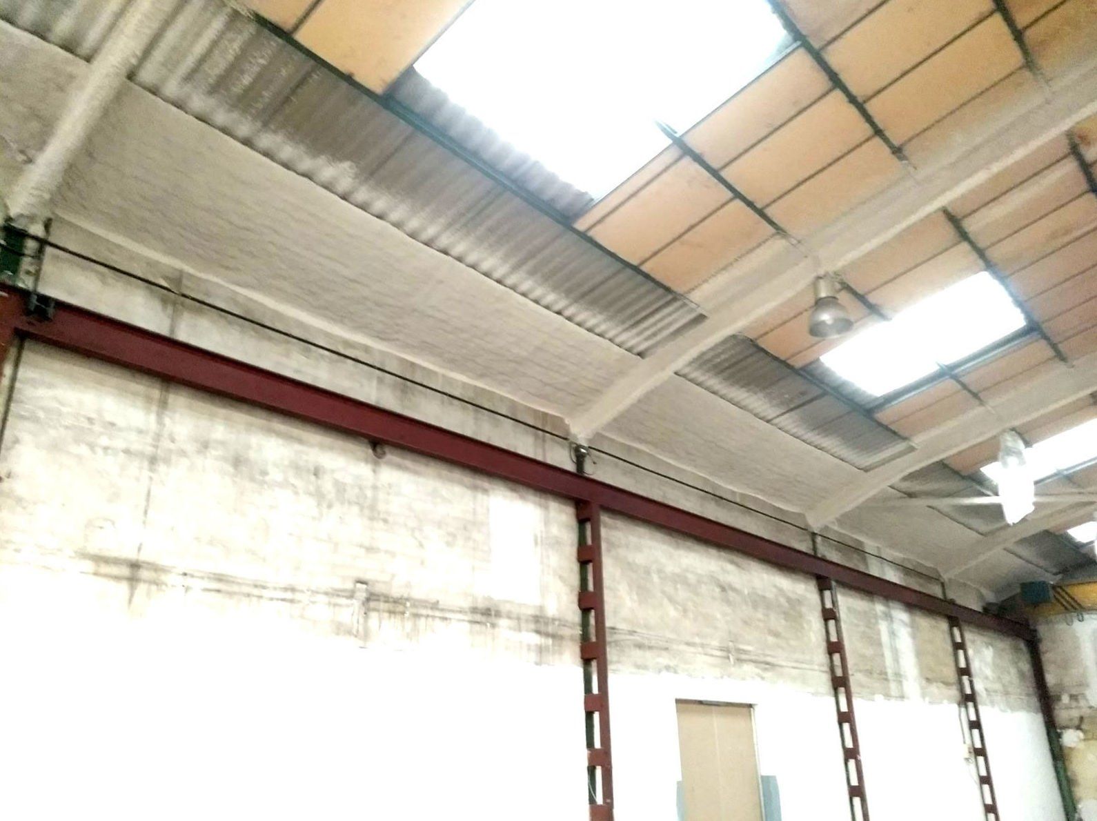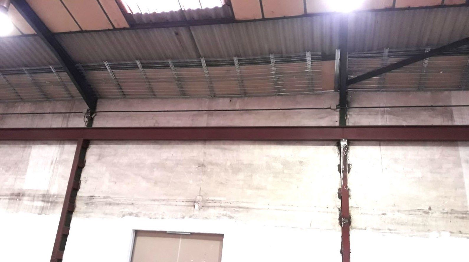 Instalación de franja cortafuegos horizontal, por medio de la instalación de una malla nervometal, para posteriormente proyectar mortero de Perlita y Vermiculita, a fin de alcanzar una resistencia al fuego de 90 minutos en Riera Dels Frares 7 L'Hospitalet Llobregat.