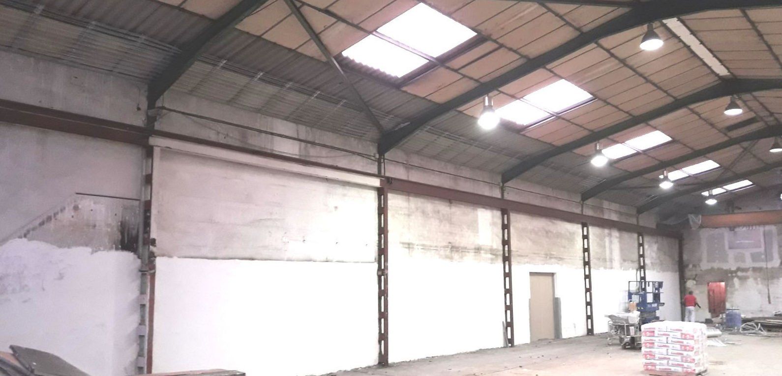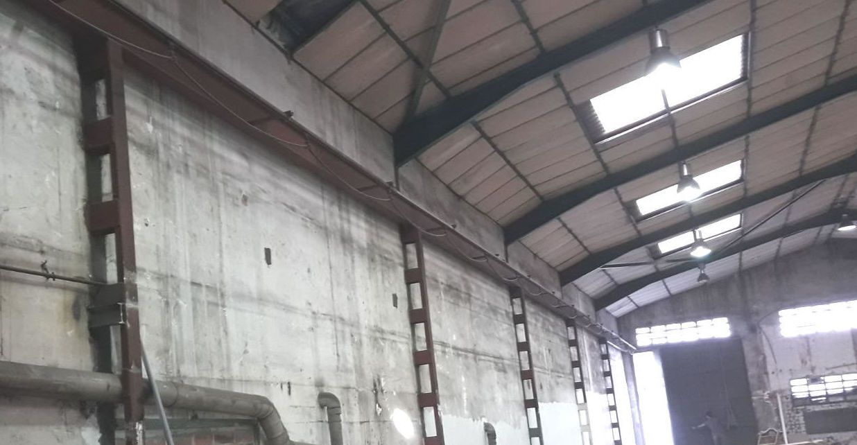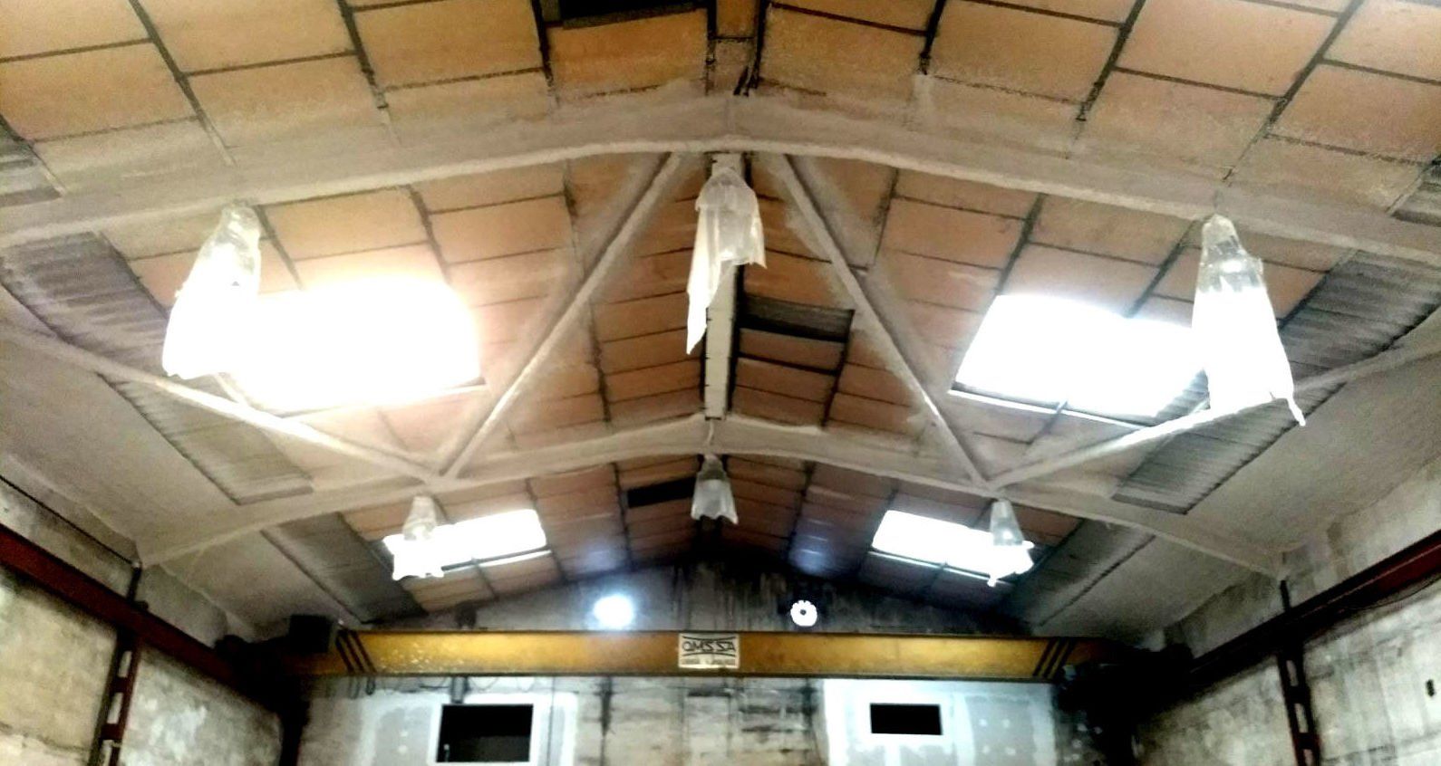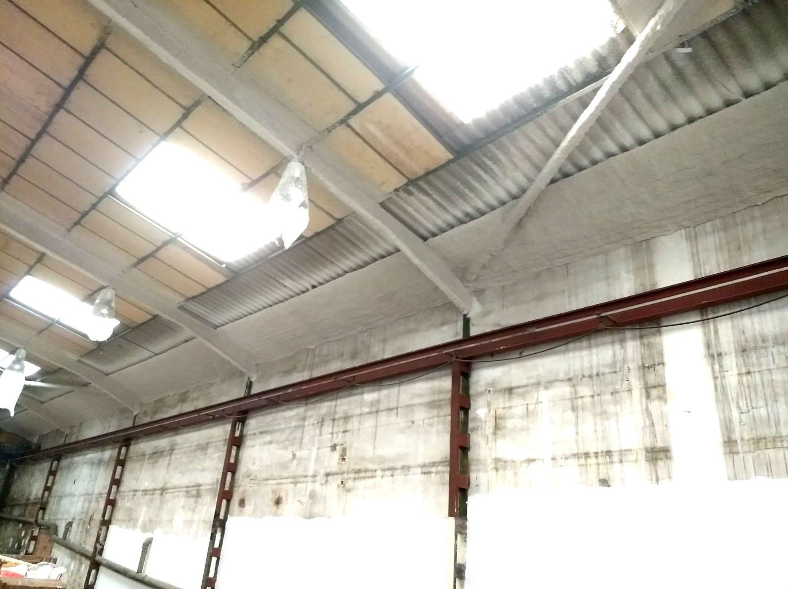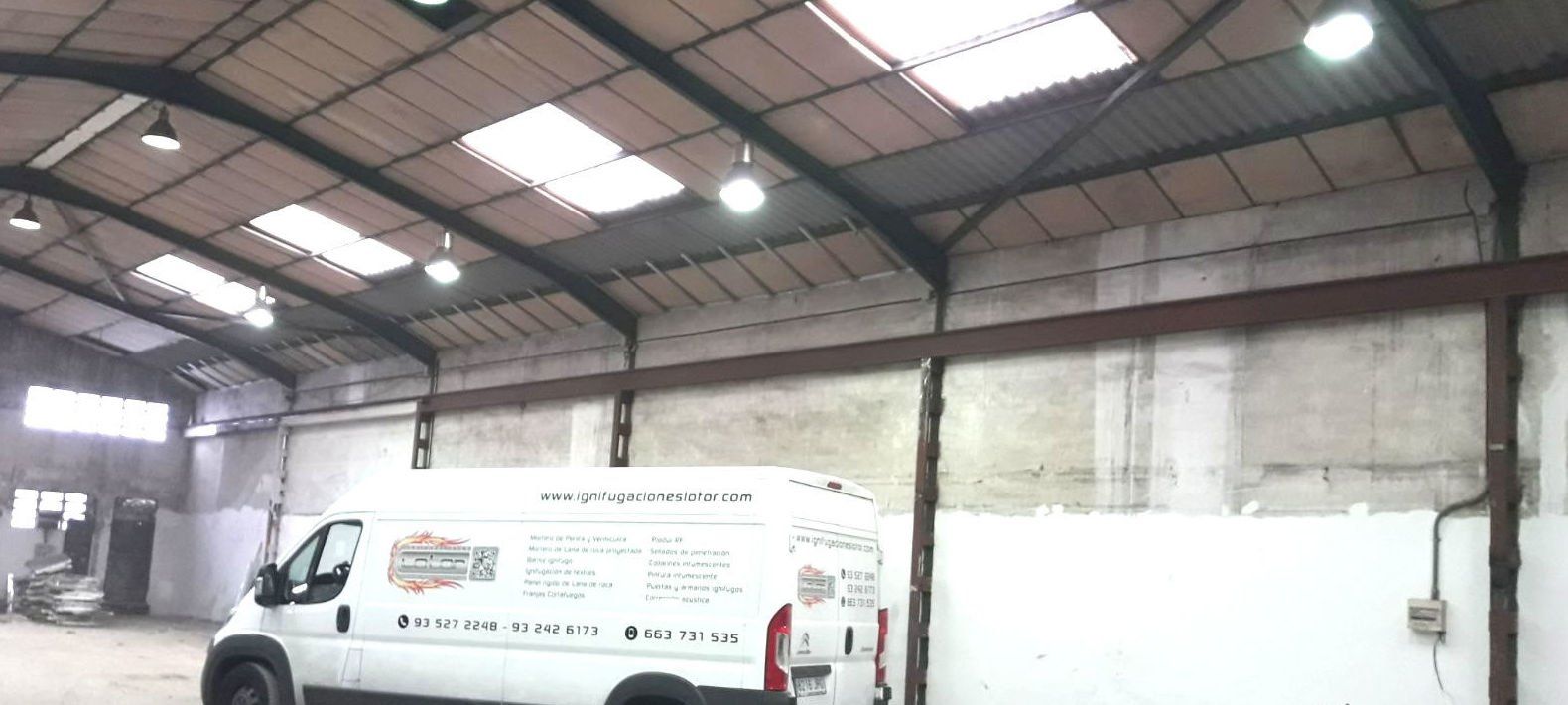 Instalación de franja cortafuegos horizontal, por medio de la instalación de una malla nervometal, para posteriormente proyectar mortero de Perlita y Vermiculita, a fin de alcanzar una resistencia al fuego de 90 minutos en Riera Dels Frares 7 L'Hospitalet Llobregat.